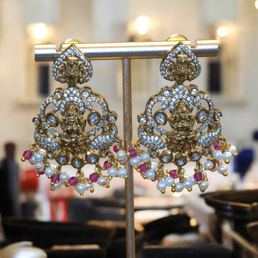Mehandi Polish Lakshmi Temple Design Victorian CZ Kundan Pearls Beads Kammal Jimky