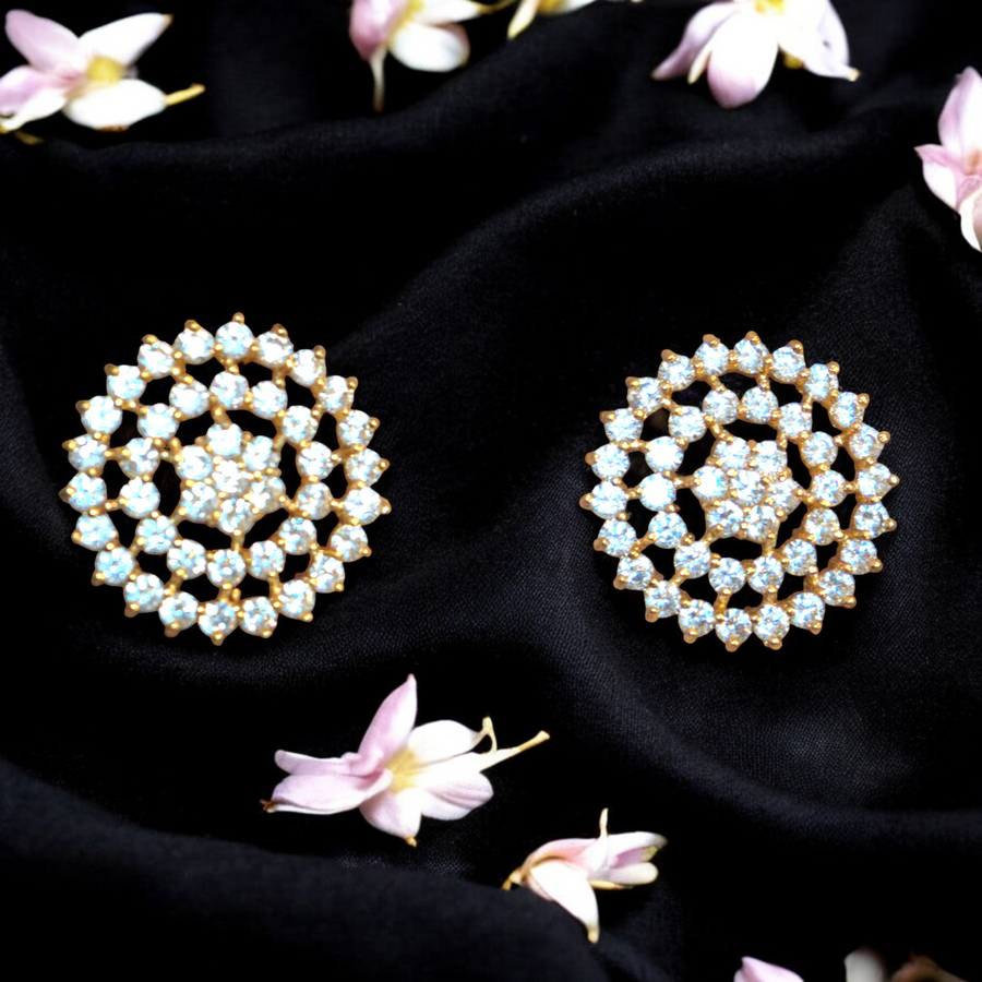 This exquisite Ketti features a delicate floral design adorned with AD stones, all set in a durable Micron finish. The screw lock ensures a secure fit, making it an ideal accessory for traditional outfits and festive occasions.