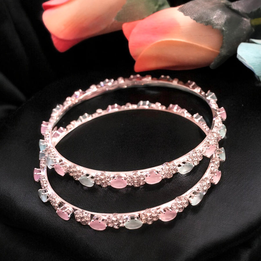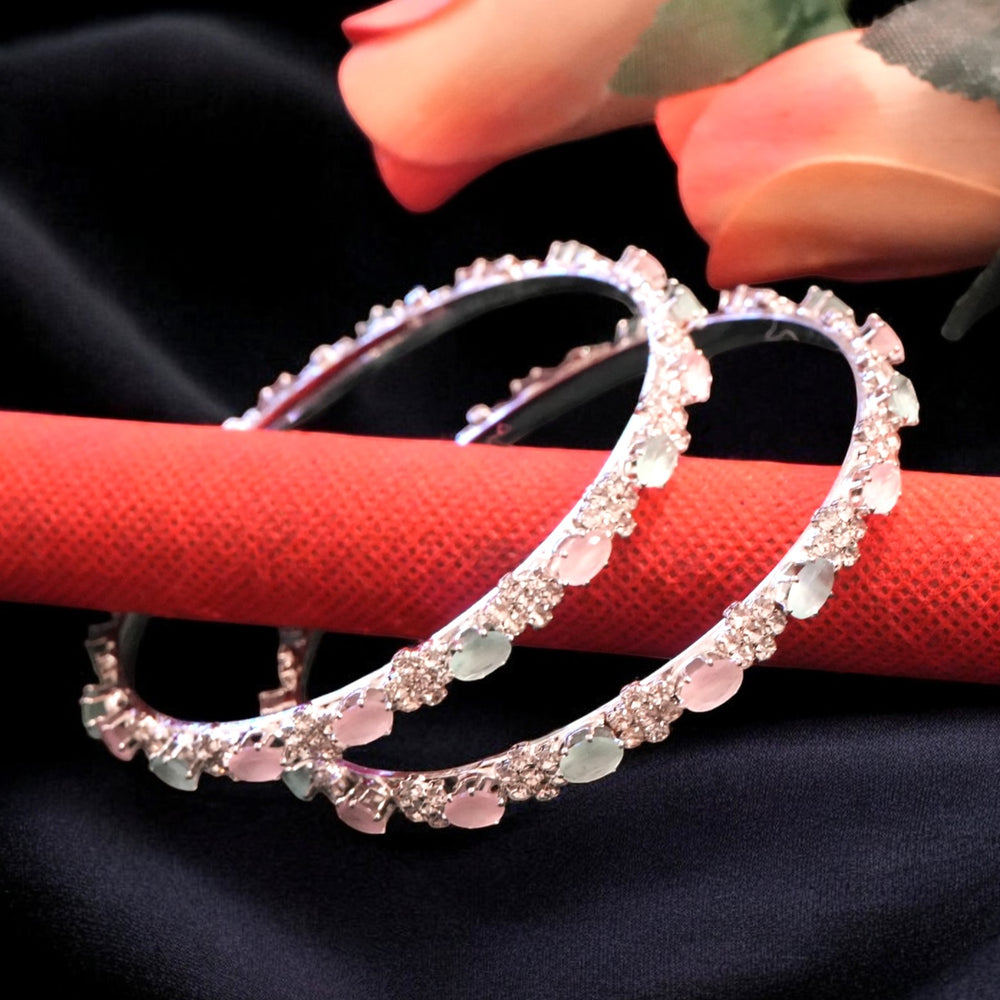 Exquisitely designed, these Rhodium-plated bangles are enhanced with both CZ and AD stones, providing a lustrous finish that shines in any light. A perfect blend of modern style and timeless elegance.