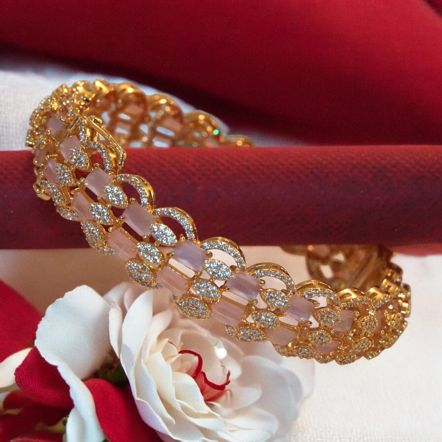 Single Piece Micron CZ AD Pink Stone Kada Bracelet Size 2.6