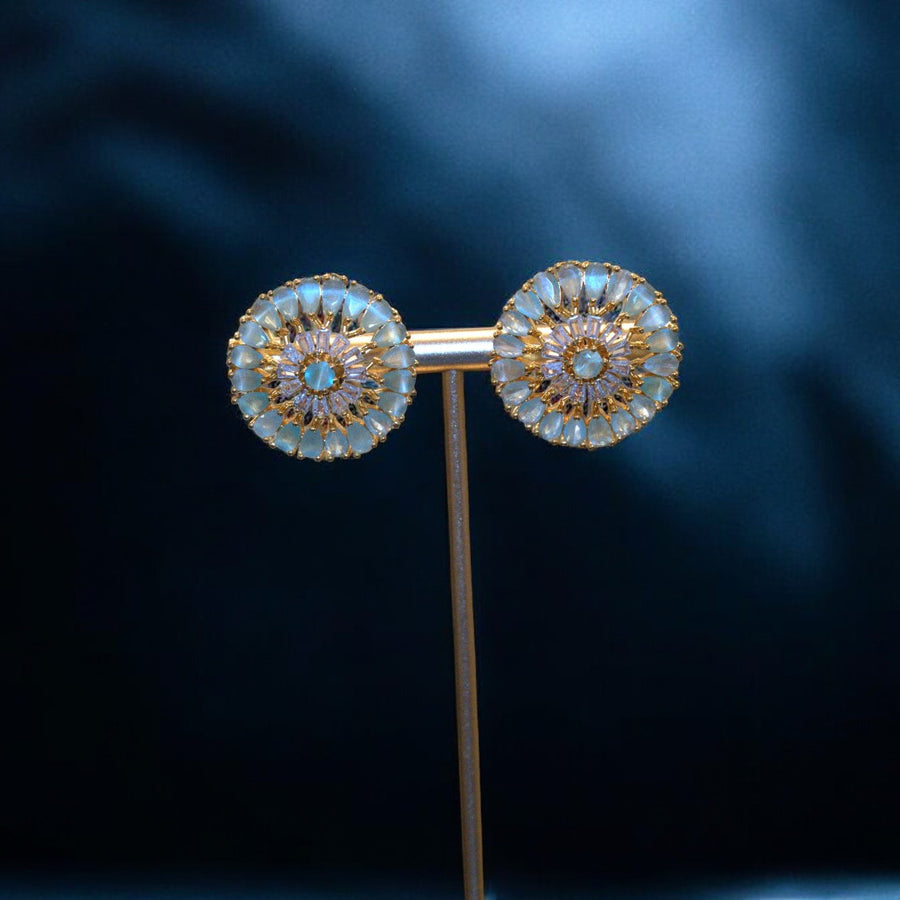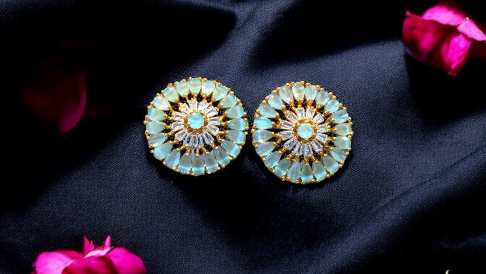 Crafted with precision, these Micron-plated earrings feature an intricate floral design adorned with AD stones. The secure screw lock adds practicality, making them a versatile choice for everyday elegance or special occasions.