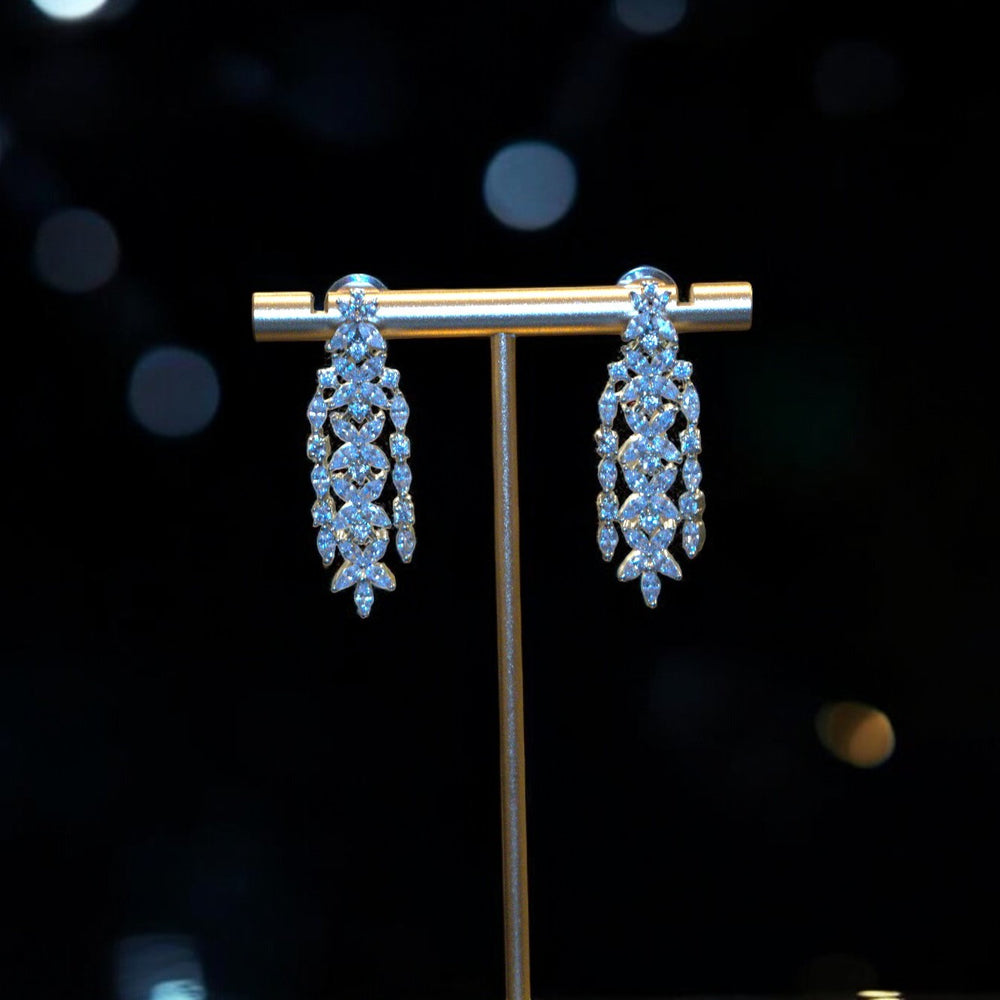 Elegant Rhodium-Plated Necklace with Clustered AD & Swiss Silver Finish